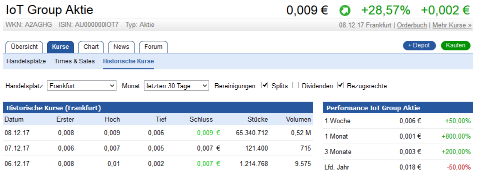 und natürlich die ca 65 mio gehandelten Stücke vom Freitag ca 500.000€ und eine Kurssteigerung von 28%
