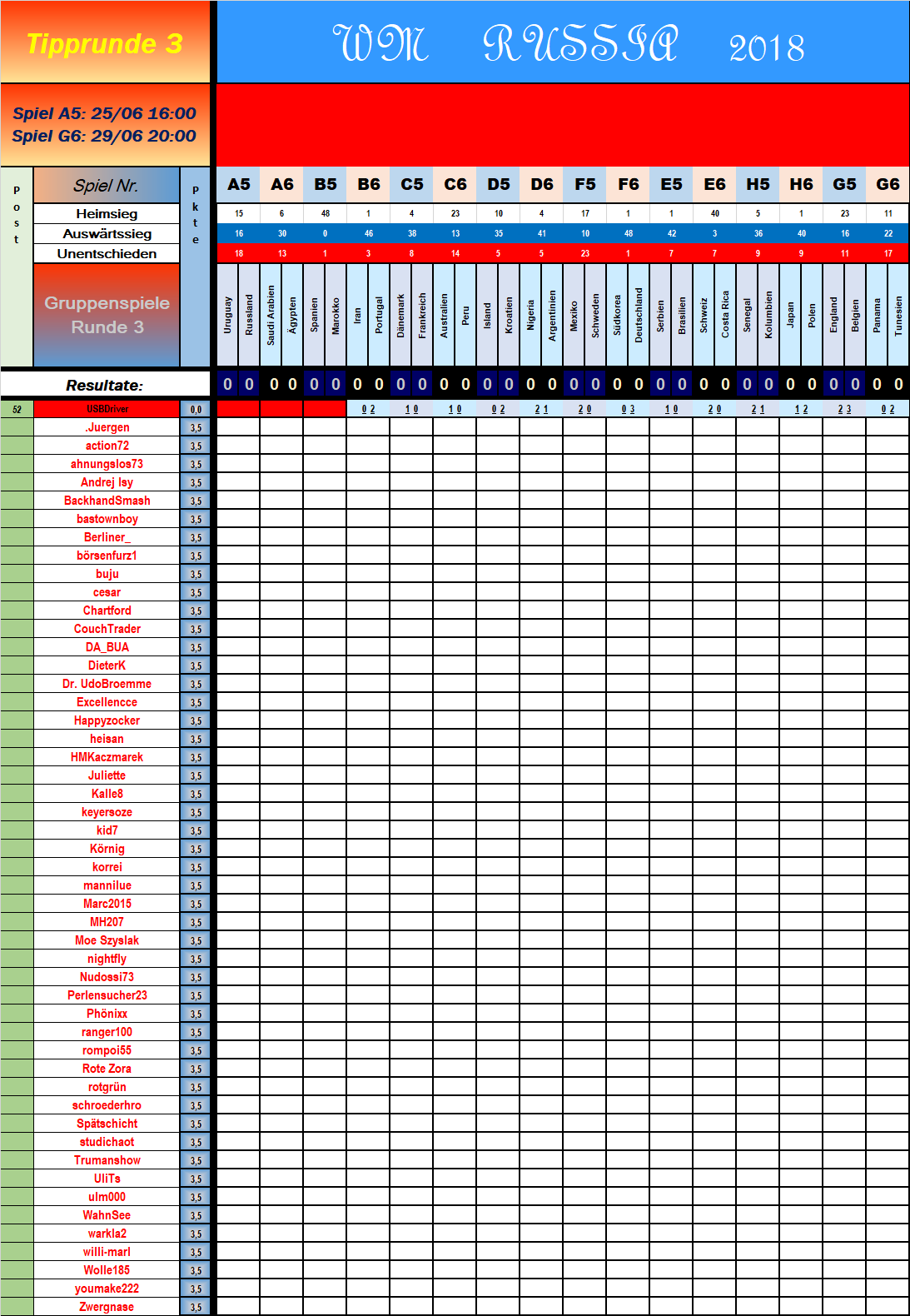 5:1Spanien - Marokko (B) 25.06. 20:00 Uhr