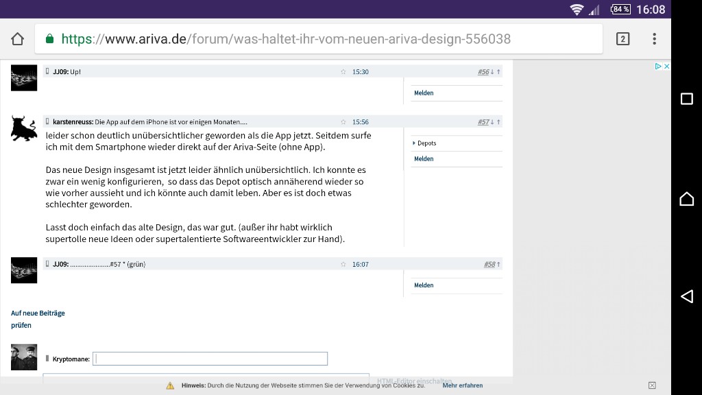 leider schon deutlich unübersichtlicher geworden als die App jetzt. Seitdem surfe ich mit dem Smartphone wieder direkt auf der Ariva-Seite (ohne App).