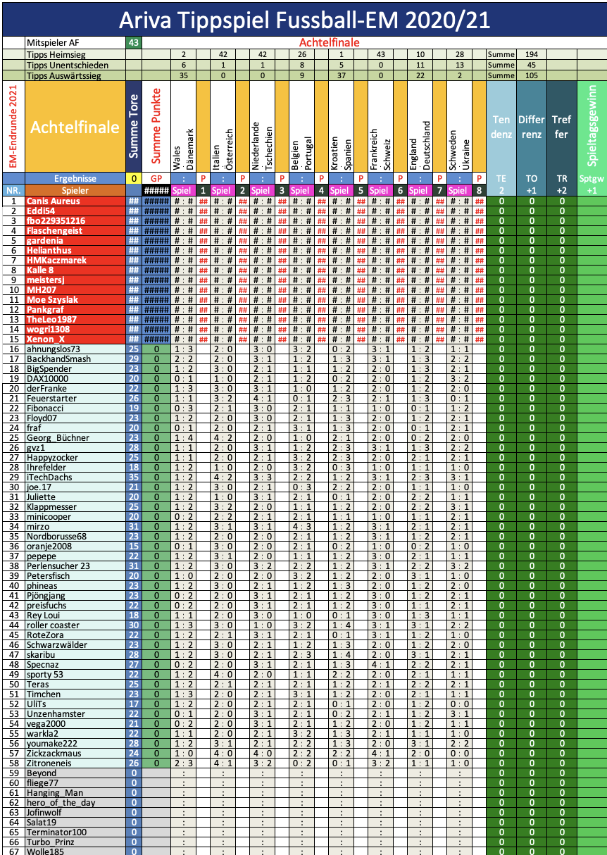 EM 2020/21, TippR 4, das Achtelfinale