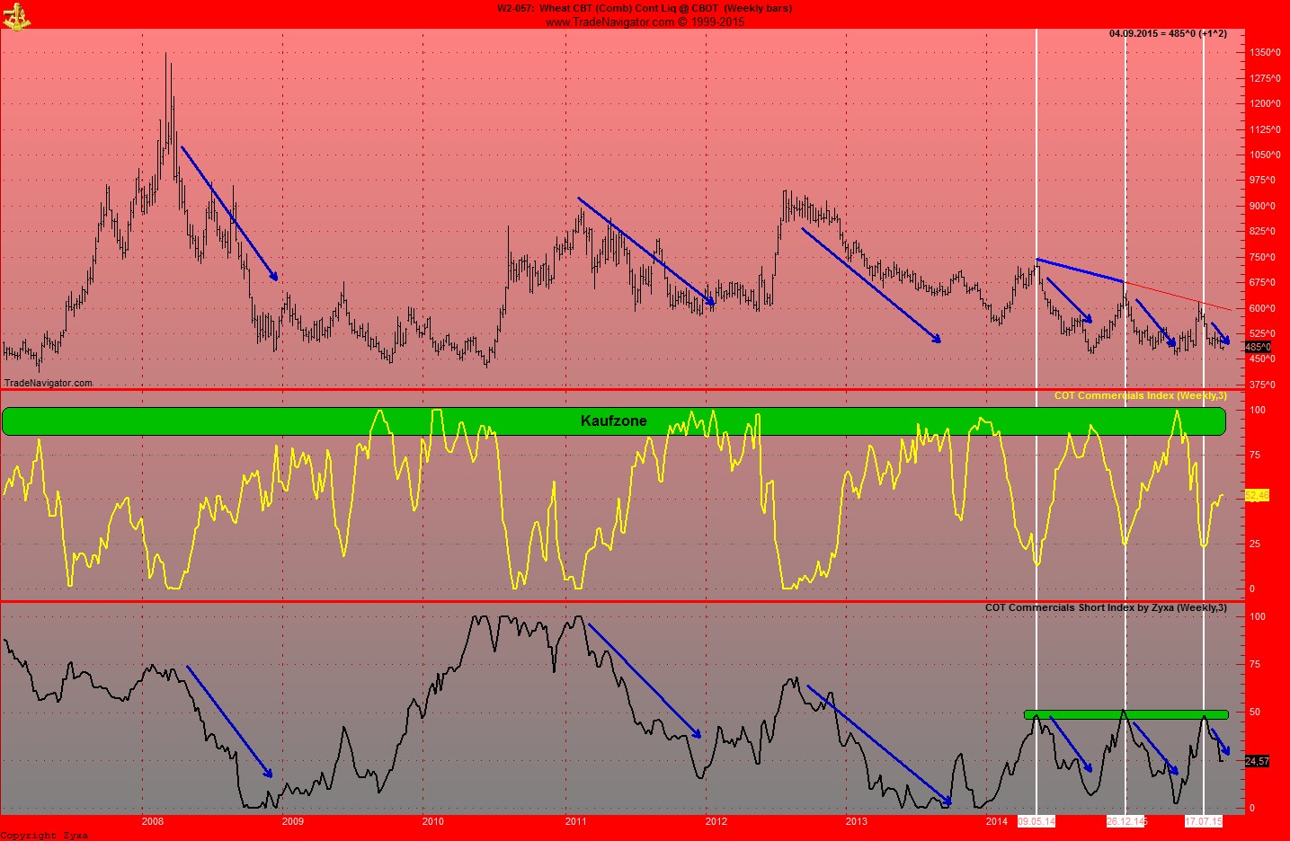 Im uebrigen ist es momentan sehr gefaerlich auf Weizen Long zu gehen, die Commercials sind am Shorten.