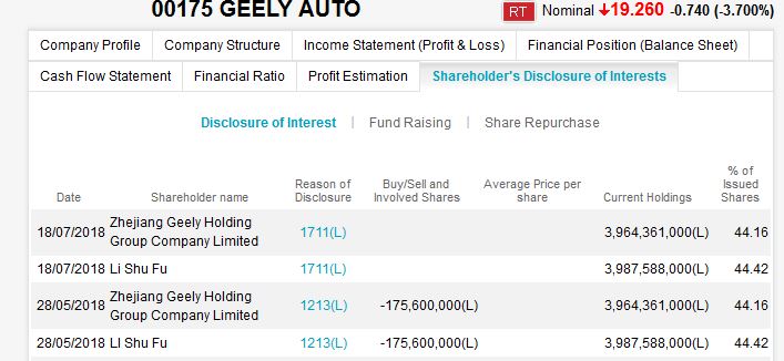 Alter Falter, jetzt schiebt Herr Li schon wieder vorsorglich seine Geely-Aktien in den Konzern zurück, hat wohl jetzt auch zunehmend bammel, dass alles zusammenbricht