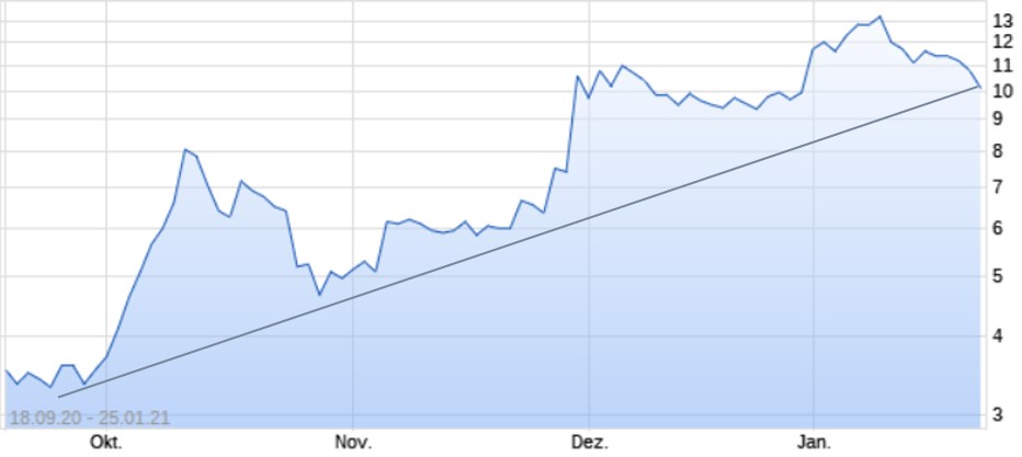 Chartprofis Würden sagen, dass bei 9,80 der aufwärtsge­richtete Trendkanal­ verläuft. Und dieser sollte nicht unterschri­tten werden.