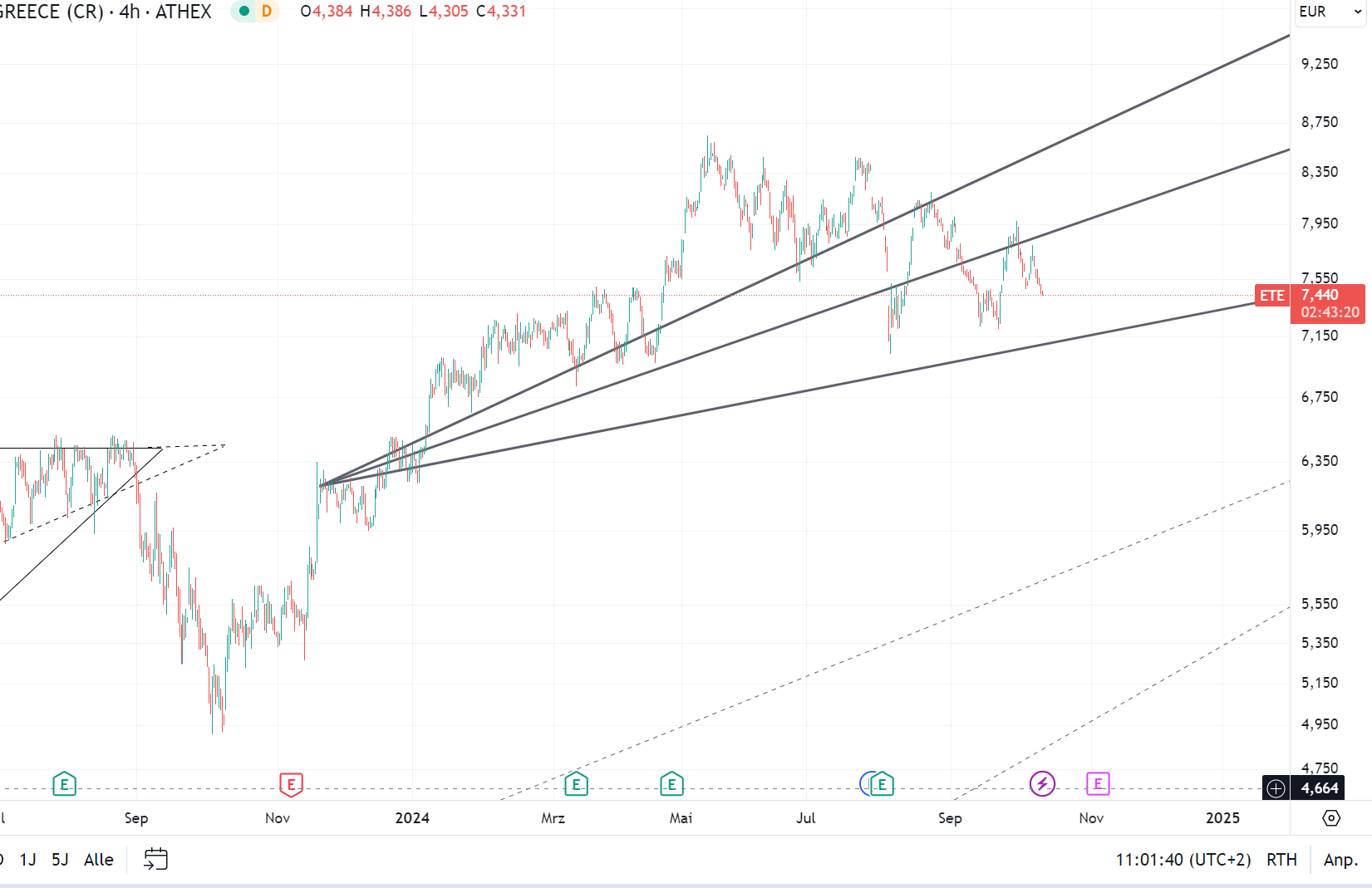 Es gibt dafür neue sommerliche Kursziele. JPMorgan (Bankingnews 28.08.), Deutsche Bank (15.08.2024). Davor schon UBS. Überall Anhebungen - ausgenommen JPMorgan bzgl. Alpha Bank, die von 2,40 auf 2,30 reduziert wird.