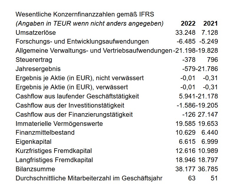 Bei den Forschungs- und Entwicklungsaufwendungen weist das Aachener Pharmaunternehmen einen Anstieg von 5,2 Millionen Euro auf 6,5 Millionen Euro aus, während die Verwaltungs- und Vertriebskosten von 19,8 Millionen Euro auf 21,2 Millionen Euro gestiegen sind.