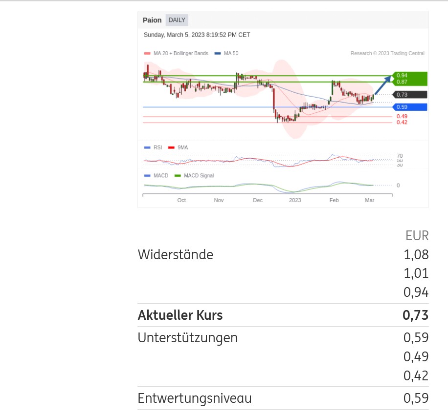 Da wir die 0,70 Cent überschritten haben, ist Paion zum Zocken (kauf) attraktiv geworden.