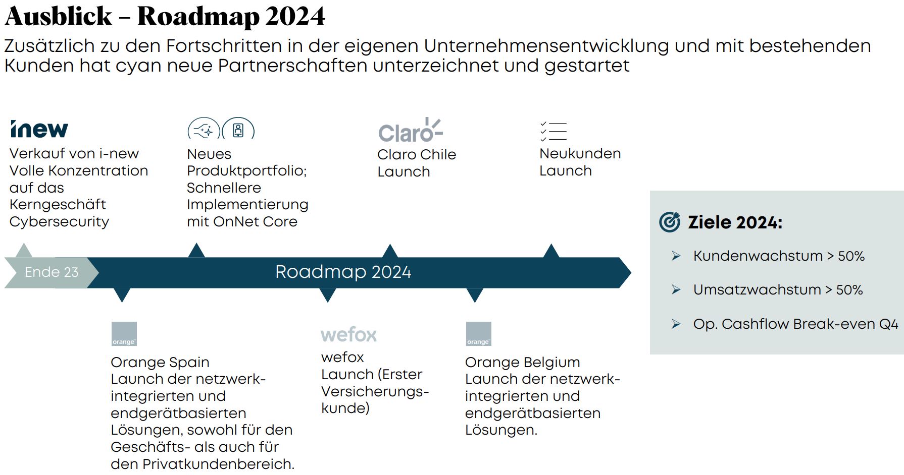 Wir sind ausgesprochen zufrieden mit dem bisherigen Geschäftsverlauf im Jahr 2024. Wir liegen voll im Rahmen unserer Erwartungen. Wir wollen unseren Umsatz im Cybersecurity-Geschäft sowie die Anzahl unserer Abonnenten jeweils um 50 Prozent steigern.