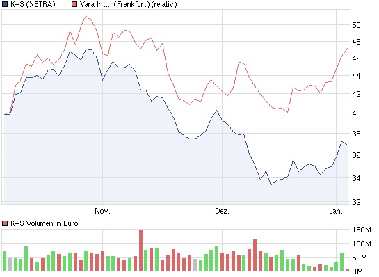 ich bin Neuling hier und halte seit 3 Wochen K+S. Ich denke das der milde Winter sich moderat negativ auswirkt, weil überall die Lager voll sind und vorerst auch bleiben. Demnzufolge gehen keine Neubestellungen ein. Dafür wurde das Salz jedoch im voraus auch zu erhöhten Preisen verkauft. Also daran kann es aktuell nicht liegen. Ich denke das Hauptproblem ist die Entwicklung der Düngemittelpreise, welche im 4. Quartal 2011 um 30 % nachgelassen haben?! Soweit ich weiss ist dieser Nachlass noch nicht bei den Kunden angekommen, weshalb viele Kunden mit ihrer Bestellung abwarten. Trotzdem muss mir mal jemand erklären wieso die Aktie nicht wenigstens mit dem DAX mitgeht?