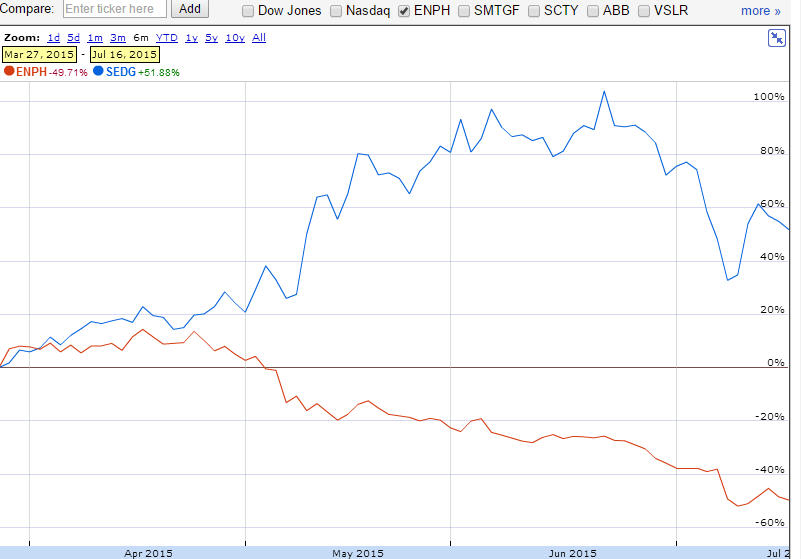 Enphase. Was kurzfristig passiert,lässt sich schwer einschätzen. Bis Ende des Jahres sehe ich aber große Chancen für einen Kursanstieg vom jetzigen Niveau von mehr als 100 Prozent.. SE kann ich gar nicht einschätzen,darüber hinaus sind mir die Umsätze in Euro viel zu gering. Insofern kommt SE für mich als Kauf nicht in Betracht...