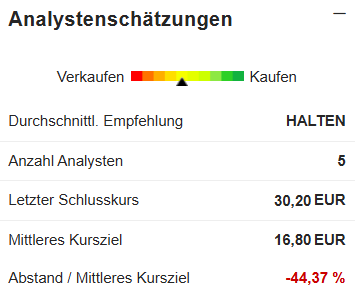 Die Aktie hat mehrmals versucht, aus dem Bereich von ca. 29,00 Euro nach oben auszubrechen (bis ca. 29,60), danach setzte aber immer ein recht heftiger Abverkauf, wobei sich der Kursrutsch bis jetzt in Grenzen hält (bei 28 Euro scheinen sich wieder Käufer zu finden).