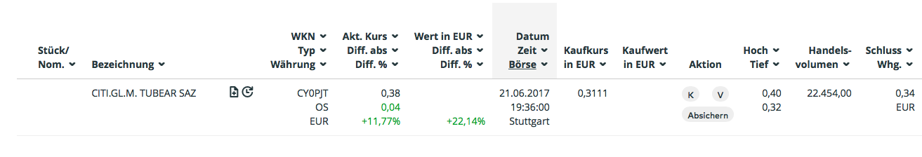 Mein EK aktuell 0,3111€... Anbei ein Foto, nicht das du denkst ich schwindel... ;)