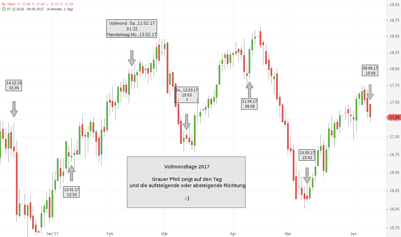 In dem Chart habe ich kurz mal die Vollmondtage des letzten halben Jahres herausgearbeitet.
