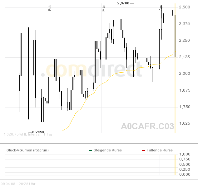 ... ich hatte letzte Woche bei 2,42 € leerverkauft. Besser kann es für mich also nicht laufen.