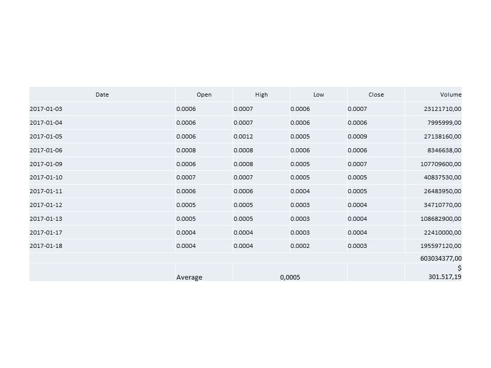 Der Kurs ging von Jahresbeginn bis gestern von 0,0007 auf 0,0003 zurück.