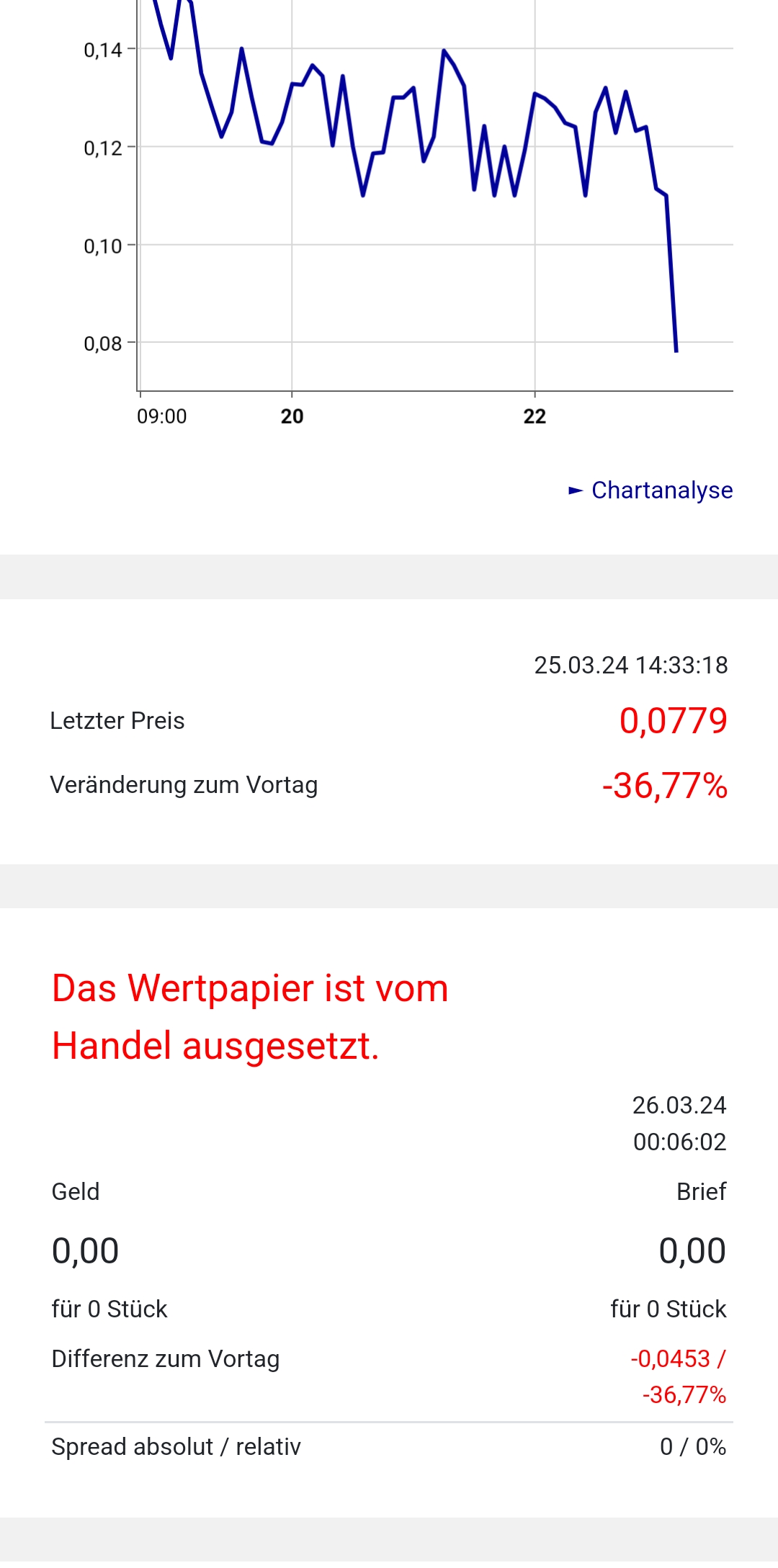 Was nicht mehr handelbar ist, kann nicht mehr tiefer gehen. Logisch? So sehe ich das jedenfalls. OTC vielleicht - viel Spaß beim Abzocken lassen.
