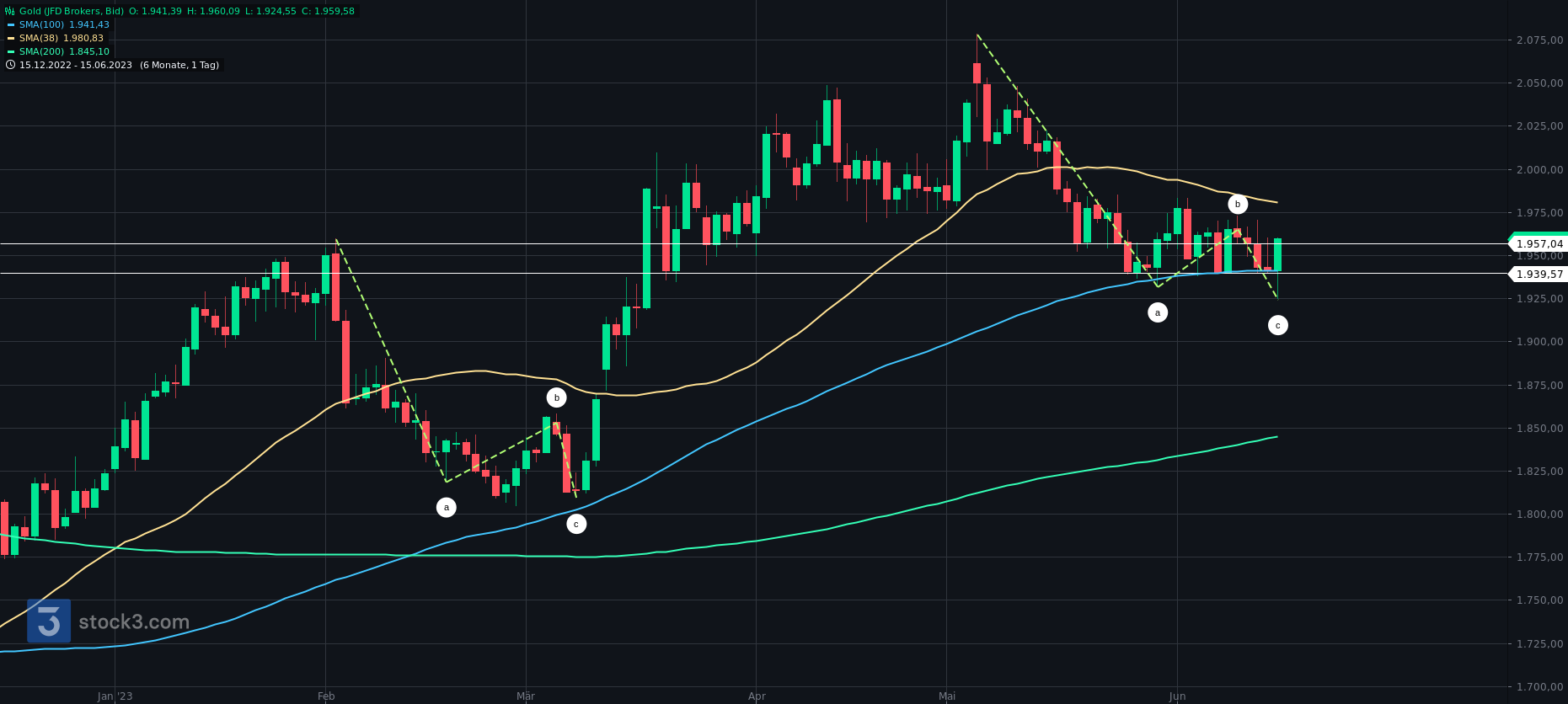 Wie erwartet sackte Gold in der Spätschicht wieder ab.