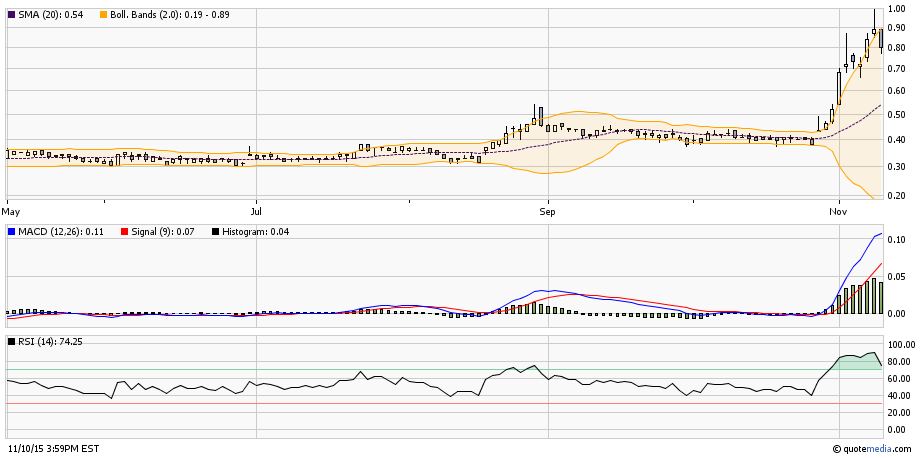 RSI noch bei 74 aber im Bollinger haben wir wieder Platz bis 0,90 CAD gut 12% und wenn man die Gier mit einbezieht...........................