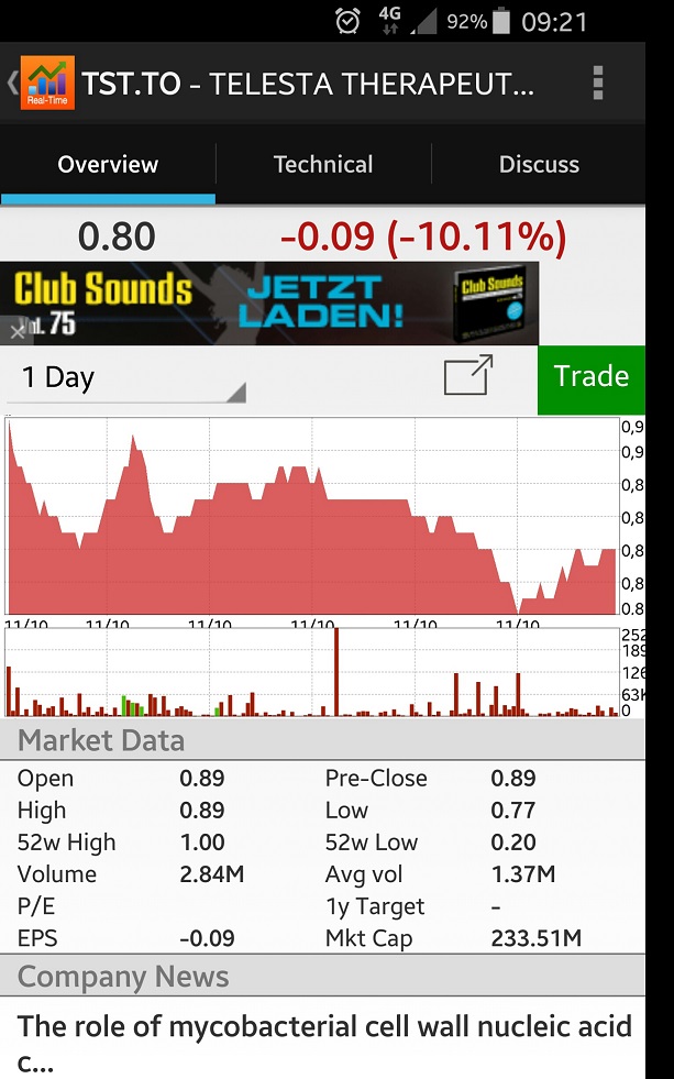Möchte aber um die 0,70CAD wieder mit der selben Summe wieder rein. So die Strategie. Falls das nicht klappt beiße ich mich evtl. in den allerwertestens und schaue als Trostpflaster auf die realisierten Gewinne :-)