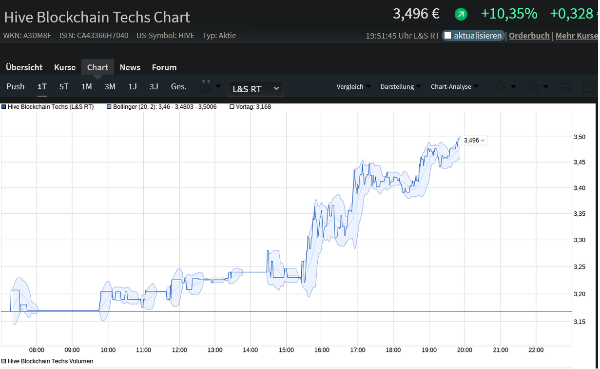 hättest du mal besser "wie ich" in HIVE investiert­ als die Aktie noch für 0,1€ zu haben war.