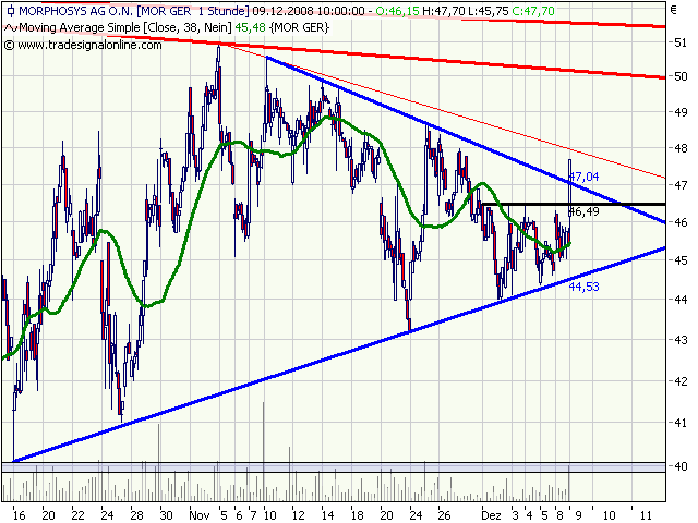 Vielleicht noch ein Tipp, es gibt sehr gute Biotechs, die auch schon Produke im Markt haben aber hierzulande eher unbekannt sind, z.B. Celgene, BioMarin Pharmaceutical oder Myriad Genetics...hier sind die Risiken auch eher geringer. Oder wer doch ein wenig mehr Risiko verträgt dem empfehle ISIS Pharmaceutical, Regeneron oder Intercell...:-) aber Morphosys bleibt aufgrund seines Geschäftsmodells einfach attraktiv und kann in 5 Jahren vielleicht schon ein Vielfaches wert sein.