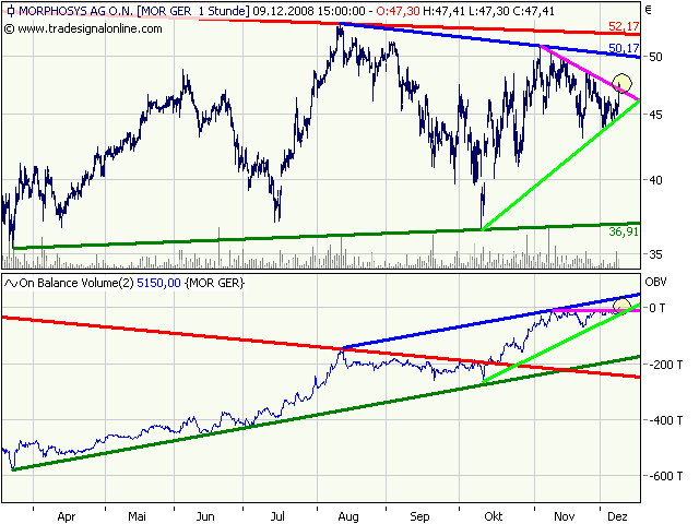 ich halte ja nicht richtig viel von Charttechnik, aber die obere Gerade des Dreiecks wird es bald zerbröseln!