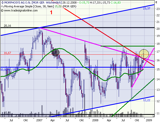 MOR hat zum ersten mal seit August 2008 wieder jenseits der 16,67 geschlossen. Das ist sehr ordentlich für 2 Handelstage.