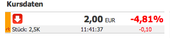 vor der meldung standen wir bei 2,30 - da gehts auch wieder hin