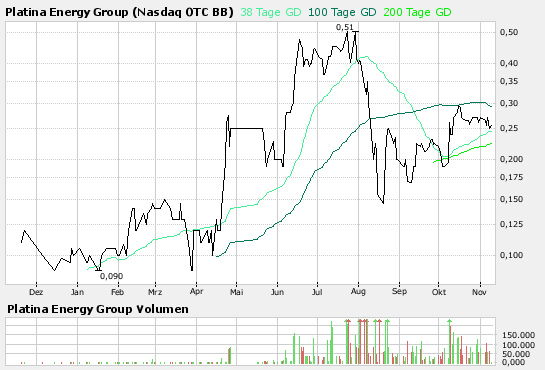 mein Gefühl sagt mir, das es nun bald los gehen wird.noch ca 8 Wochen bis zum Jahresende. Ich gehe davon aus das wir im Dezember spätestens die durchschlagenden News erwarten können. Danach werden wir zum Jahresanfang die 50 Centmarke passieren. Dies ist meine Meinung. Den bis dato wurden nur Zeitpläne geäussert, diese laufen aber in spätestens 8 Wochen ab. Das sollte man sich vor Augen halten, denn es sollen ja bis Jahresende über 50 >Quellen erfolgreich gebohrt worden sein. Wenn dieses Ziel erreicht ist hat Platina seinen Cash Flow erheblich steigern können und es wird gut ab gehen (nur Richtung Norden).