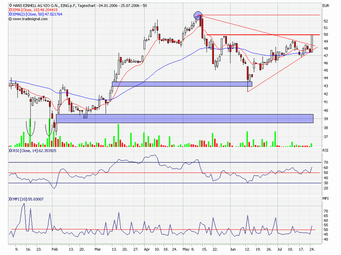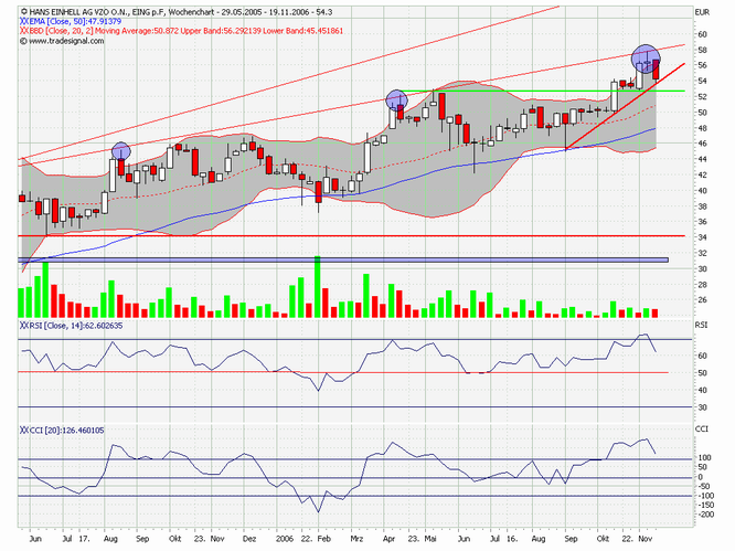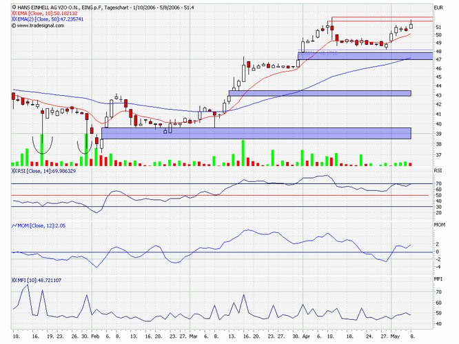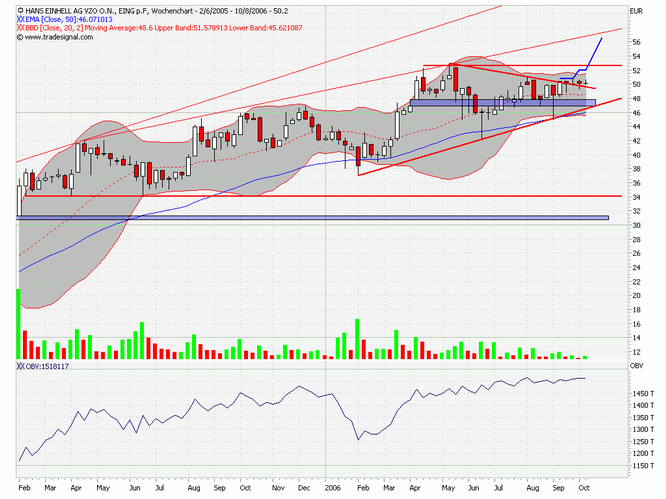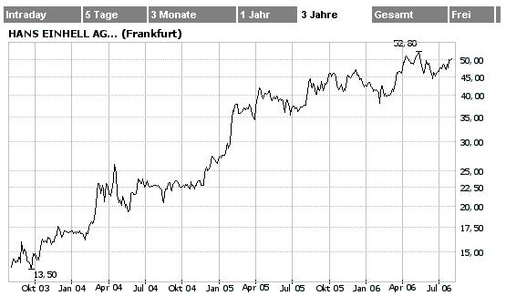 Die Einhell AG gibt im Rahmen der Hauptversammlung bekannt, dass der Konzernumsatz in den ersten 5 Monaten des Geschäftsjahres 2006 um 10,2 % von 169,6 Mio. Euro auf 186,9 Mio. Euro gestiegen ist. Das Ergebnis vor Steuern stieg von 9,2 Mio. Euro auf 10,8 Mio. Euro per Ende Mai 2006. Dies ist eine Steigerung von 17,4 %.