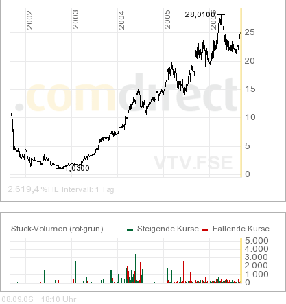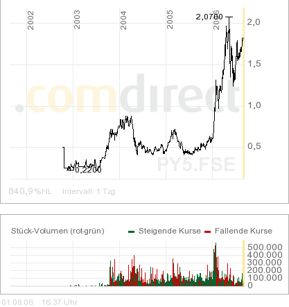 über diesen thread! Hier habe ich im Frühjahr Zinifex entdeckt (posting 26 glaube ich) und bin bei 7,70 eingestiegen. Ok, dann kam das Tal der Tränen im Sommer, dafür steht sie jetzt bei über 9 Euro!! Tolle Aktie, toller Thread! :-))