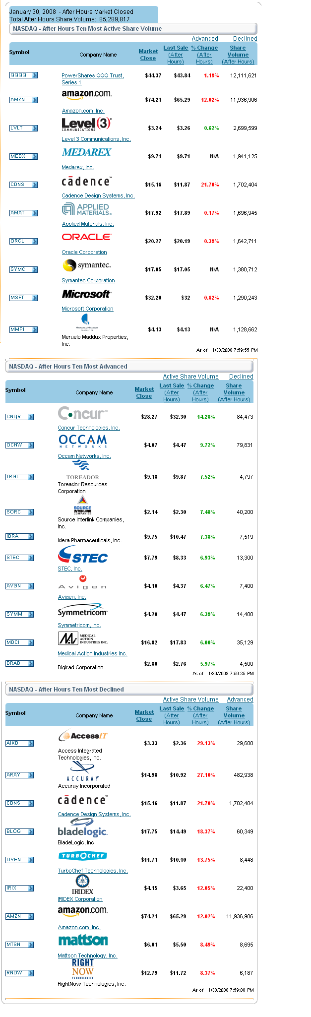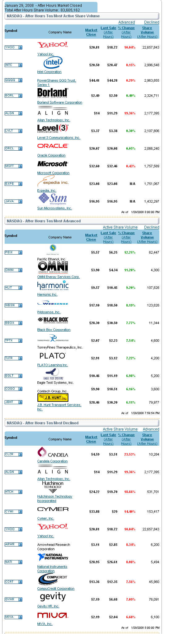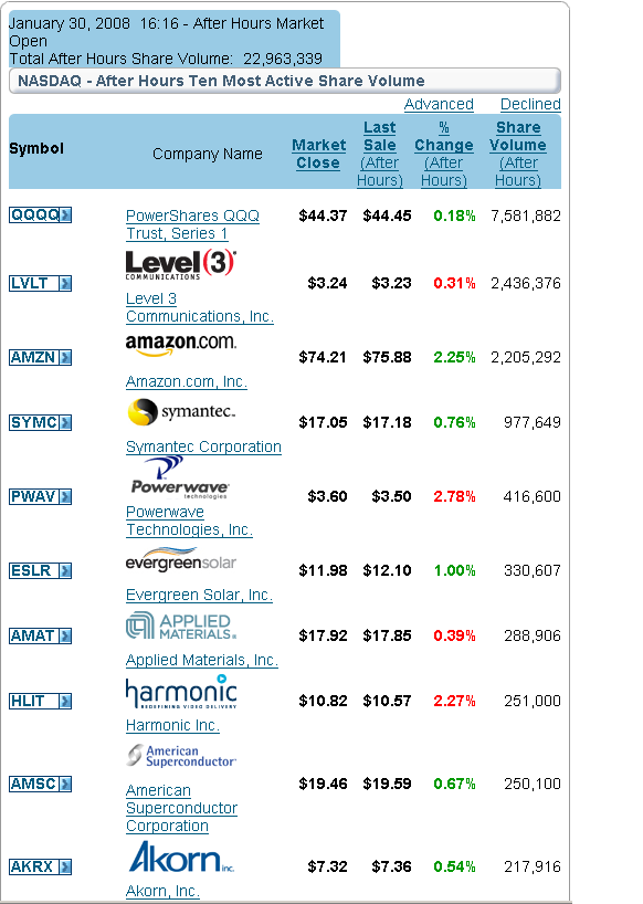 Last update: 4:05 p.m. EST Jan. 30, 2008
