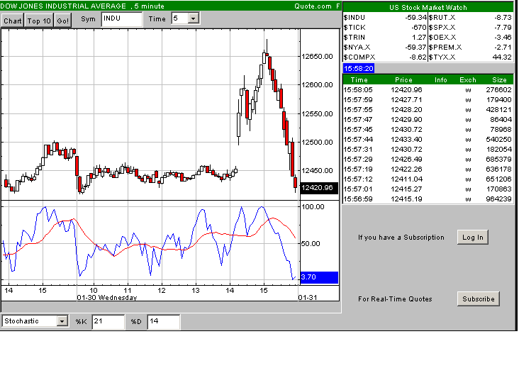 Down about 30 points ahead of the Fed decision, the Dow Jones Industrial Average ($INDU:) rallied nearly 200 points before retrenching as the closing bell neared to finish 37.5 points lower to 12,442.8.
