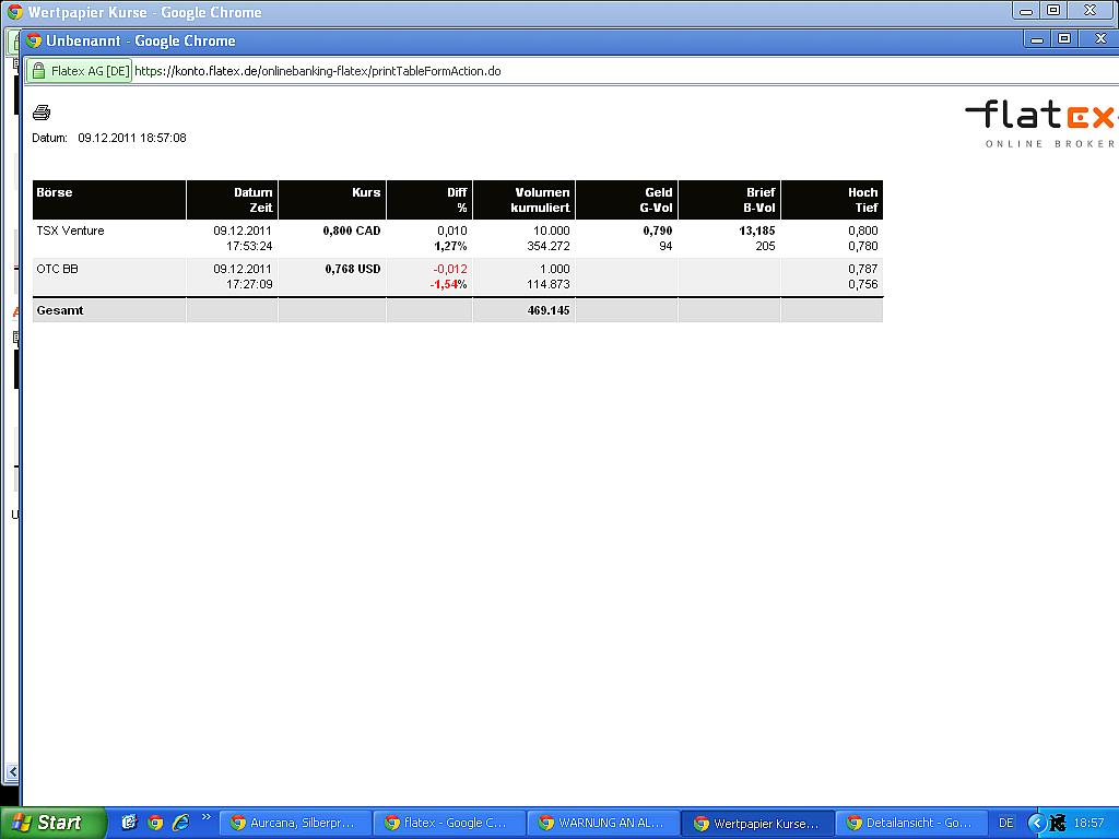 Das Management hat alle Ziele in Shafter und La Negra eingehalten und bis heute stark übertroffen. Der Silberpreis wird wohl wieder anziehen. Die Schuldenkrise in der EU ist erst am Anfang und es wird weiter Geld bei der FED und der EZB gedruckt werden, damit werden auch Gold/Silber weiter steigen und damit auch die aussichtreichsten Gold- und Silberaktien bzw. also auch Aurcana! Aurcanas Kurs ist stark unterbewertet, wenn man die Produktionszahlen von Shafter und La Negra aktualisiert und zukünftig betrachtet.