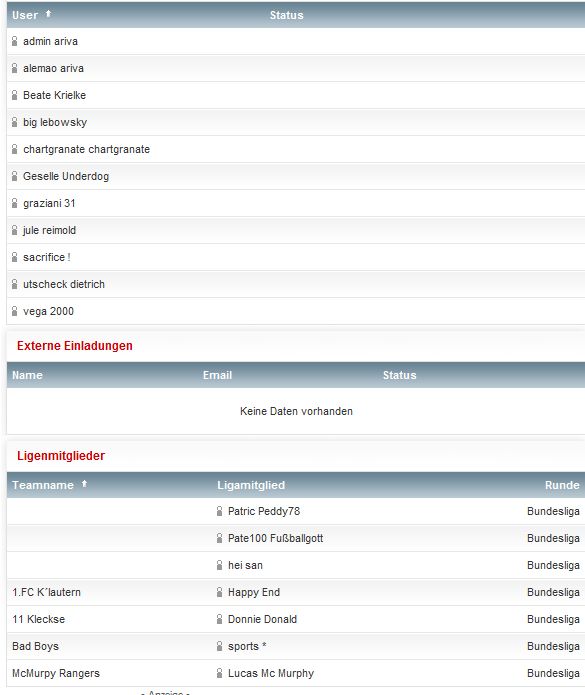Es gibt eine Liga....nämlich jetzt von sports organisert (ich denke das Geselle damit kein Problem hat ,verstehe aber auch seine Sichtweise). In dieser neuen Liga kann unser "Stein des Anstosses" (schwedenkugel) nun nicht mitmachen....damit gibt es auch kein Streitpotential mehr (ich finde das sehr gut,da ich die Aussagen von sports exakt bestätigen kann und diesen User auch nicht mehr in einer gemeinsamen Liga sehen wollte....das ging einigen so,wenn ich mich an den Mailverkehr bei Kicker damals erinnere)........sehr gut und damit ist eigentlich alles geklärt.