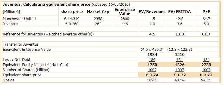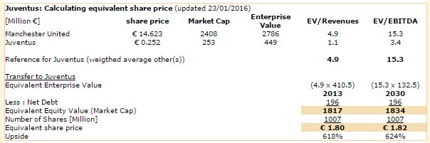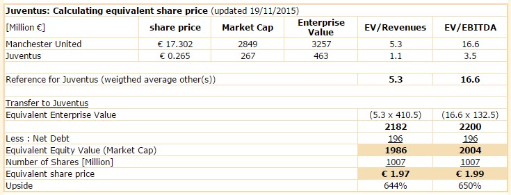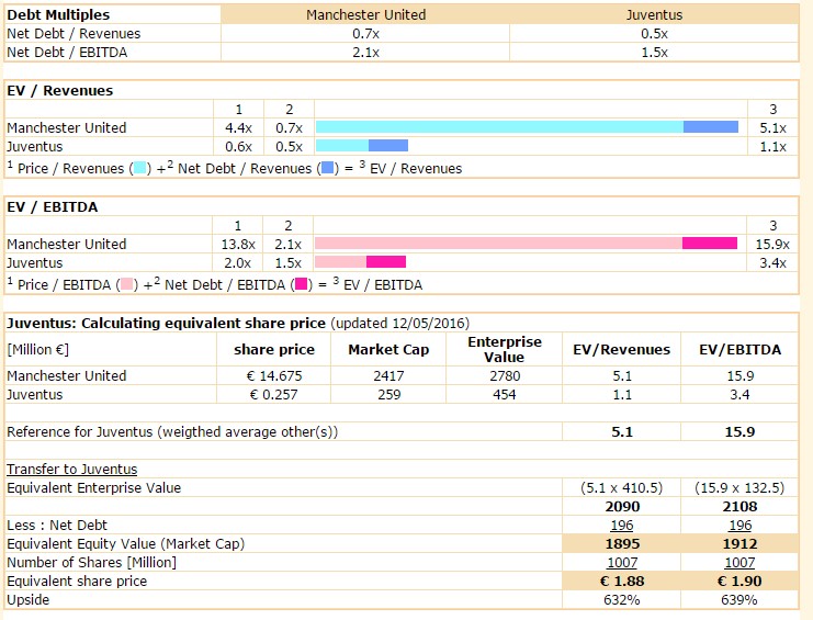 Auf basis von operative multiples kann (muss) juve gar in etwa verACHTfac­hen (im vergleich zu Branchenfü­hrer Manchester­). Die berechnung­ dazu habe ich mehrfach gezeigt.