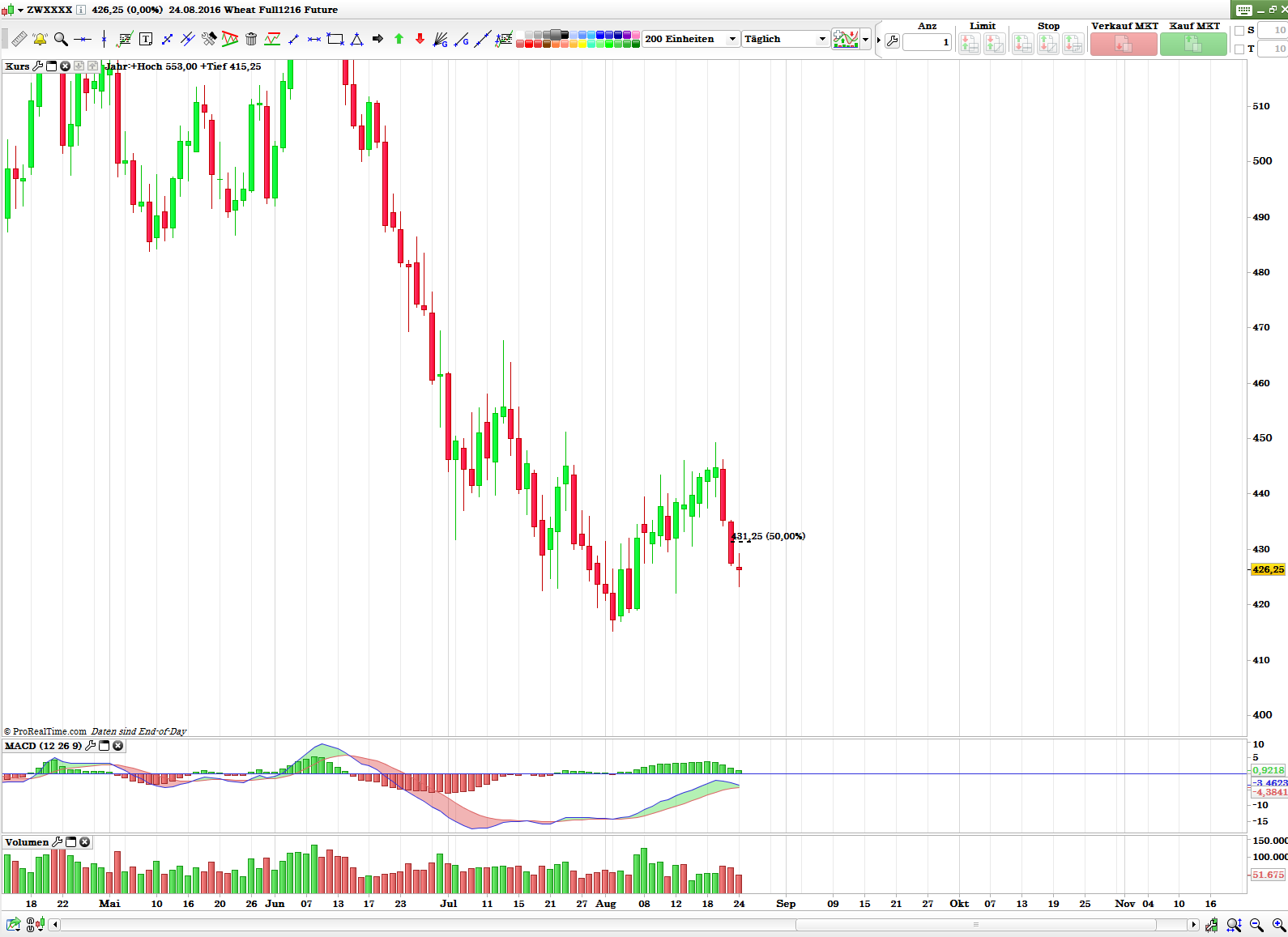 Oben in den Beiträgen habe ich Weizen Mai 2017 Kontrakt genommen. Heute habe ich Endloskontrakt angeschaut. Zu Grunde liegt mittlerweile Dezember 16 Kontrakt.
