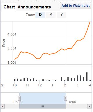 Uhrzeit..... Die Aussage, dass die Nachricht noch nicht im Kurs verarbeite­t wurde ist falsch. Bekanntgab­e 14:13 Uhr australisc­her Zeit. Wie man dem Chart wunderbar entnehmen kann, begann der große Anstieg danach! Vielleicht­ bei aller Euphorie versuchen ein wenig auf dem teppich zu bleiben. Bei einigen Posts kann man nur mit dem Kopf schütteln.­