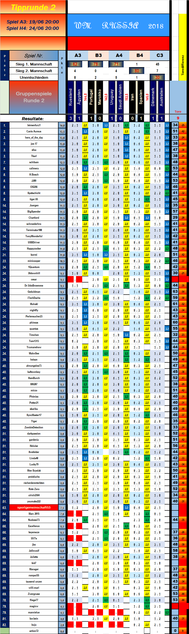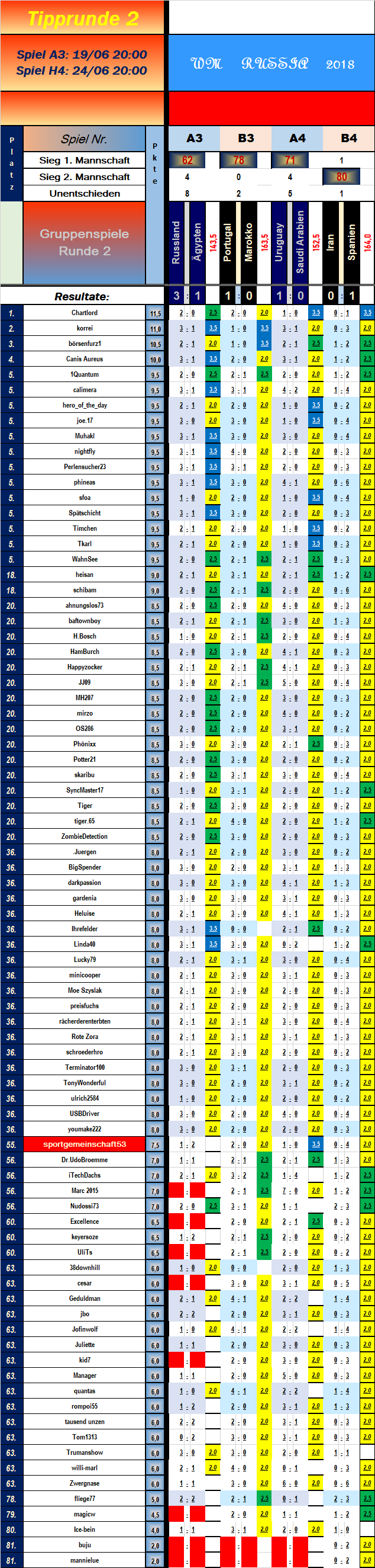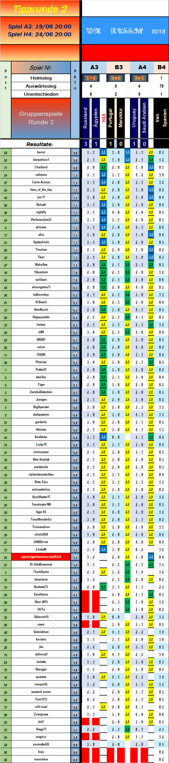 3:0 (Gr.B) Portugal POR-MAR Marokko (Mi, 20.06.2018, 14:00)