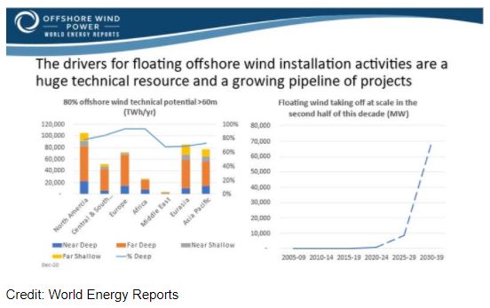 Bei den Berichten von World Energy, so Lewis, freuen wir uns besonders über Frankreich, Großbritannien, Norwegen, Südkorea, Japan und die USA, da Demonstrations- und Pilotprojekte gefördert und Pipelines und Ausschreibungspläne für schwimmende Windpachtverträge entwickelt werden.