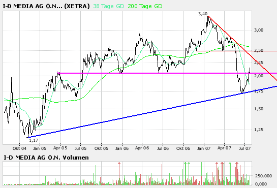 wenn man in den letzten Handelstagen die Umsätze bei ID-Media beobachtet hat, sah man um die 1,90 Euro große Bewegungen.........