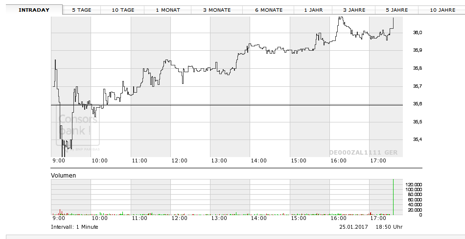 will 2017 um 20 - 25 % wachsen. Ist doch in Ordnung . Aber heute gute Gelegenheit den Wert auf € 36 zu ziehen und Stoploss auszulösen