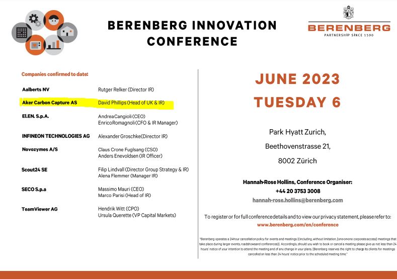 Es ist schoneine Ehre für Aker Carbon Capture dabei zu sein. Haben wir nicht einen Schweizer der dort in Zürich vorbeischauen kann ?