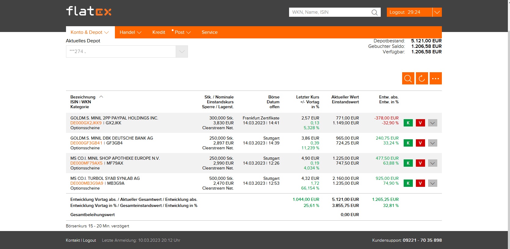 Mein Zockerdepot (bei flatex) hat zumindest ein bisschen was gebracht, wobei hier auch immer ein Totalverlust möglich ist, da ich dort nur Knockouts handele..