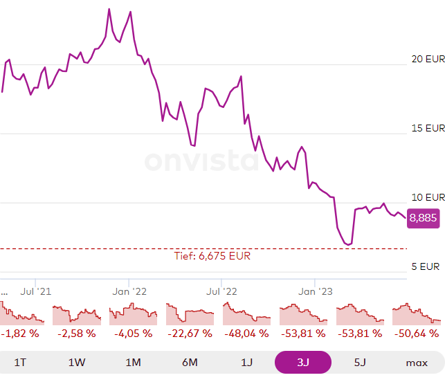 Seit der Erstnotiz im Mai 2021 mit rund 19 € ist der Kurs mittlerweile um -52% eingebrochen. Dies zeigt, dass der damalige Ausgabekurs wegen des Corona-Hypes zu hoch war. Das jetzige Kursniveau dürfte dem fairen Wert entsprechen.