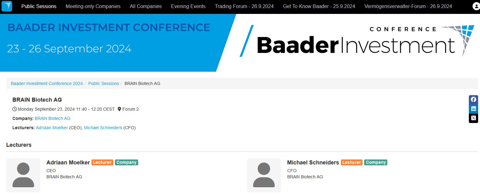"Die Akribion Ausgründung avisieren wir unverändert für dieses Kalenderjahr. Über die genau Konstruktion der Ausgründung kann ich aus Vertraulichkeitsgründen keine genauen Angaben machen. Nur so viel, wir gehen davon aus, dass nach der Ausgründung jährliche Kosten im Umfang von ca. EUR 2 Millionen von externen Investoren getragen würden und nicht mehr die G&V der BRAIN belasten würden. Diese würde dann auch zu einem beschleunigtem Weg in die Profitabilität führen. Begleitend erhoffen wir uns natürlich eine positive Marktreaktion."