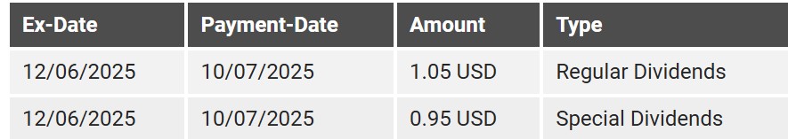 Ich habe Ende letzter Woche pro ADR 0.95 USD an Dividende gutgeschrieben bekommen..