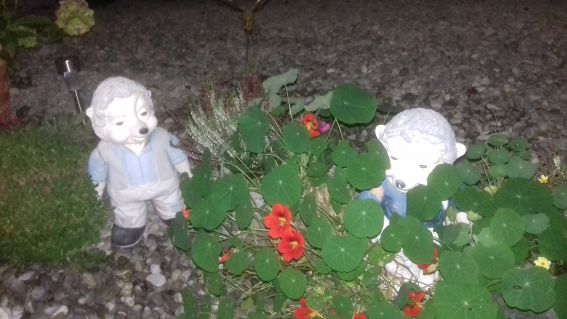 ganze Nacht hat es geregnet. Wir haben Pflanzen im Garten die wurden
