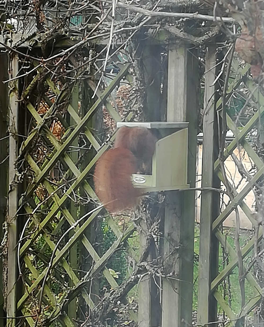 Hier noch ein Eichhörnchen im Futterhaus letztes Jahr