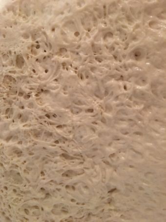 Der Teig sollte nach ca 12 Stunden+ Ruhezeit so aussehen,