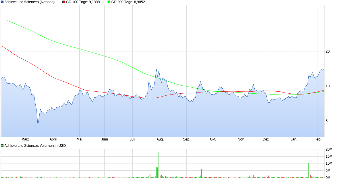 WKN: A2QAR3 / ISIN: US0044685008Achieve Life Sciences nach Reverse Split